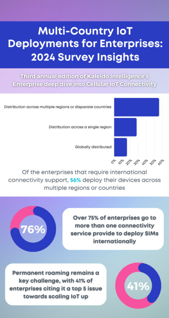 Kaleido, alongside Wireless Logic, will present during this webinar, with a new custom report available for all registrants. Alongside assessing product requirements, we’ll delve into international eSIM enablement and address the challenge of permanent roaming, cited by over 40% of respondents as a concern and one of the biggest issues impacting scale-up.